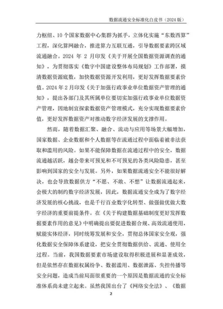 随着全球产业数字化、智能化不断加速,数据已经成为重要的战略性资源,数据流通安全也成为数字经济发展的核心挑战,对国家治理和科技创新都有着重要作用。亟需构建适合我国国情的数据流通安全标准体系,明确标准化方向,为数据要素合规流通和安全保障提供坚实的标准支撑。