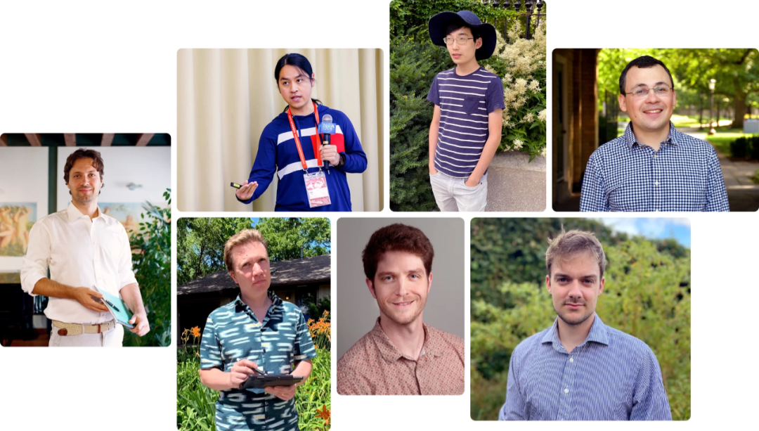 其他七位研究者的照片。左起顺时针方向:Dario Beraldo、Lin Chen(陈麟)、Kevin Lin、Nick Rozenblyum、Joakim Færgeman、Justin Campbell 和 Dima Arinkin。