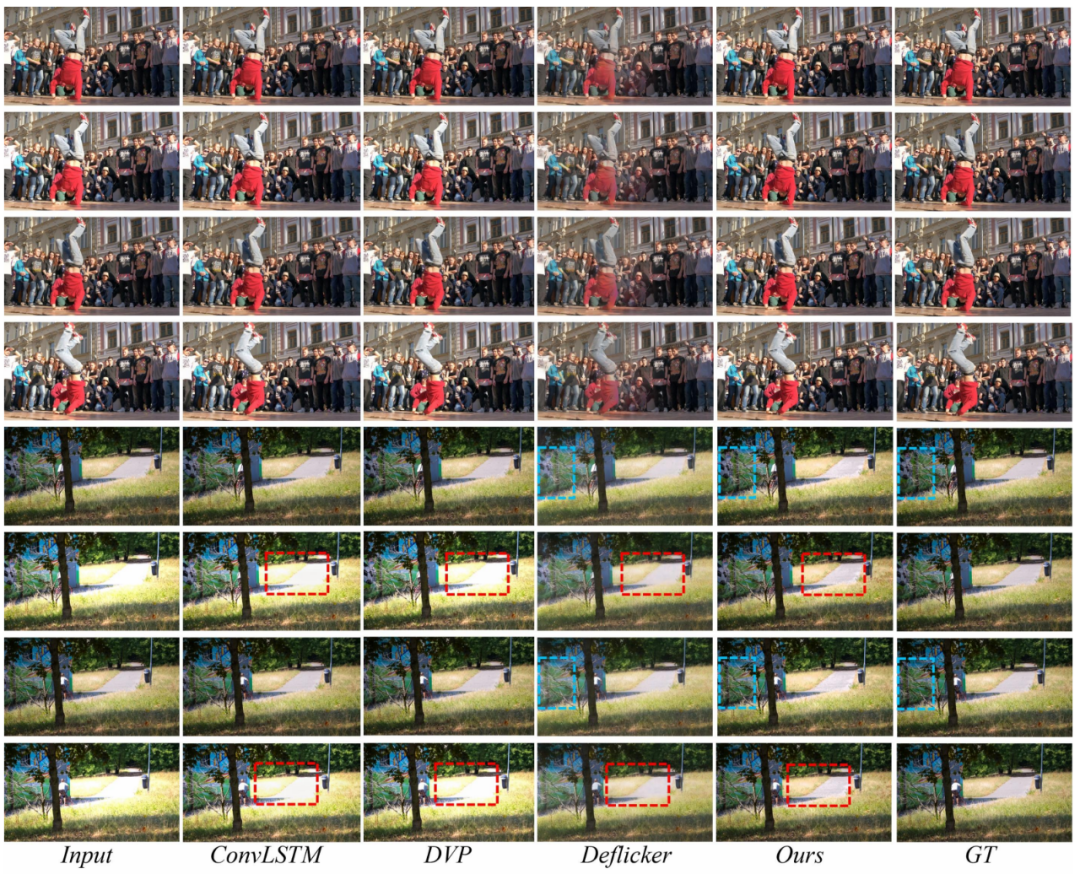 BlazeBVD 针对的是视频闪烁场景,视频闪烁容易对时间一致性造成影响,而时间一致性是高质量视频输出的必要条件,即使是微弱的视频闪烁也有可能严重影响观看体验。究其原因,一般是由拍摄环境不佳和拍摄设备的硬件限制所引起,而当图像处理技术应用于视频帧时,这个问题往往进一步加剧。此外,闪烁伪影和色彩失真问题在最近的视频生成任务中也经常出现,包括基于生成对抗网络 (GAN) 和扩散模型 (DM) 的任务。因此在各种视频处理场景中,探索通过 Blind Video Deflickering (BVD) 来消除视频闪烁并保持视频内容的完整性至关重要。