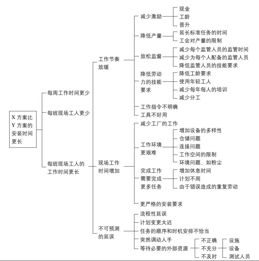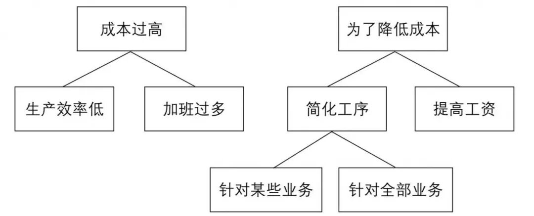 为了确定客户应如何削减直接人工成本、合理决策,咨询顾问运用了逻辑树来分析问题,根据“相互独立,完全穷尽”的原则,对各种可能性做了系统的逻辑细分。
