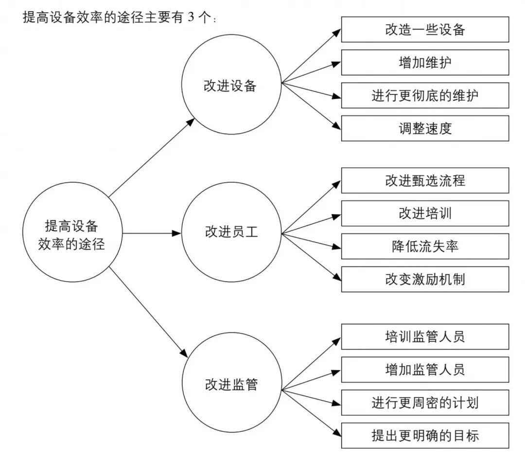 在步骤2和步骤3,可以使用具体的流程图和因果结构,展示公司的经营要素、作业或任务如何相互联系构成一个系统,建立“背景”模型。在步骤4和步骤5,运用逻辑树得出可能的解决方案,以及实施这些方案对公司可能产生的影响。