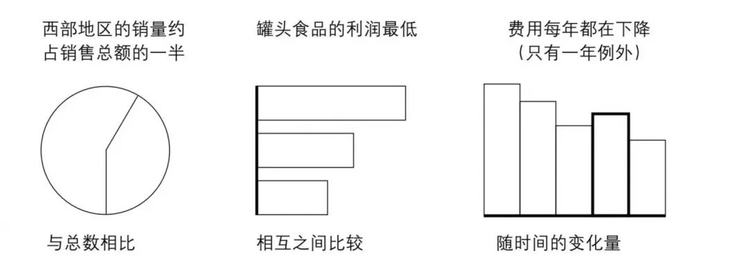 图表幻灯片通常用会饼状图、条形图、柱状图、曲线图或散点图,表示某一结构或流程的组成部分或形象地展示数据。用图表回答的问题一般分为5类,如图11-5至图11-9所示。