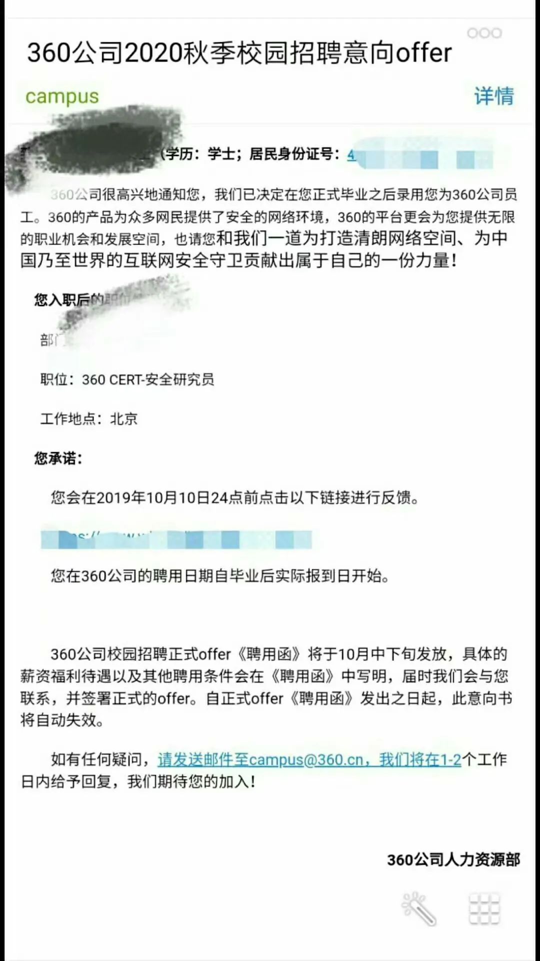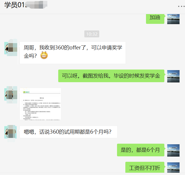 4、祝贺学员喜获360安全offer,进入政企安全部门!