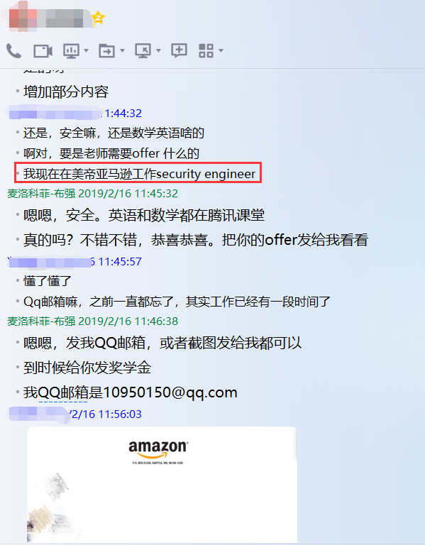 7、祝贺优秀学员成功求职美帝Amazon安全岗位,要是能在将来回国报效祖国就更好了!