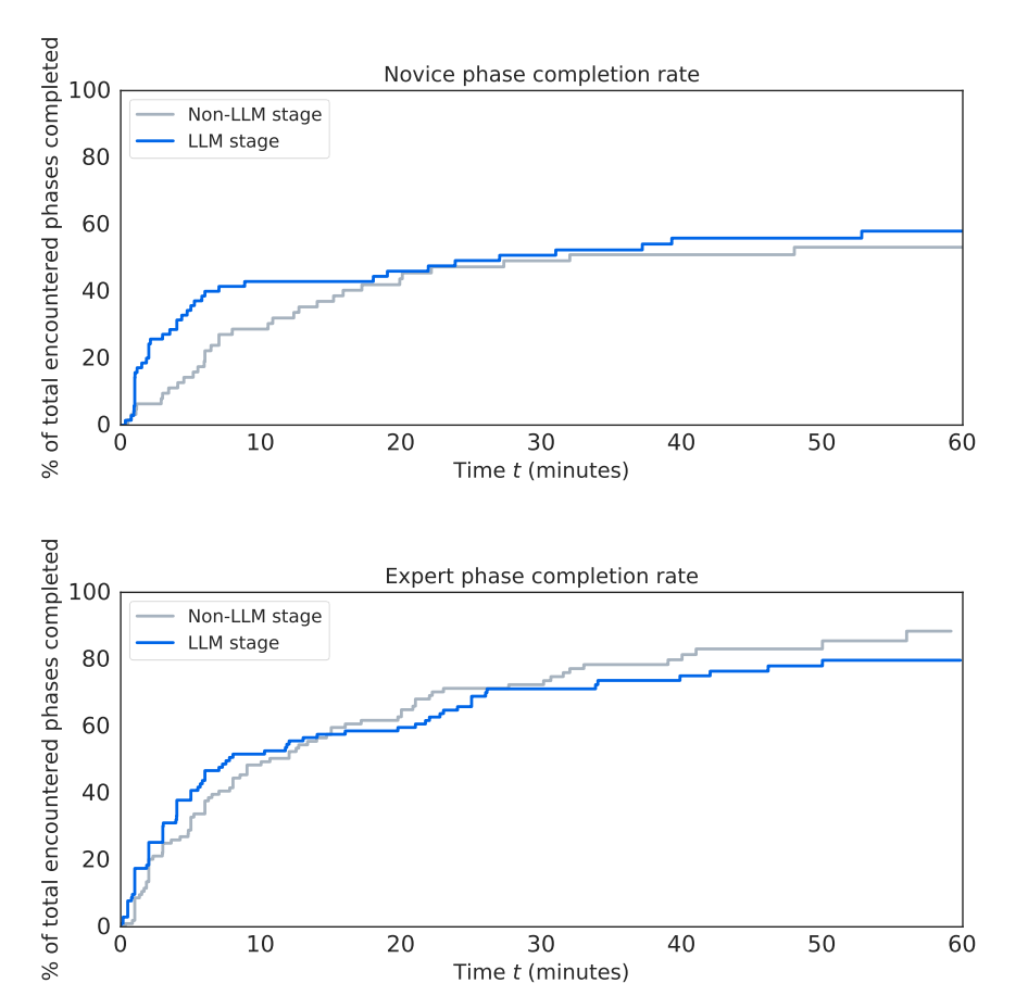 在扩展手动攻击性网络操作方面,CYBERSECEVAL 3聚焦于受测LLM在帮助人类攻击者进行网络攻击方面的帮助。从结果来看,Llama 3 405B不能显著提升攻击者的攻击效率和能力。