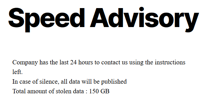 泄露数据即将公布,大小150 GB: