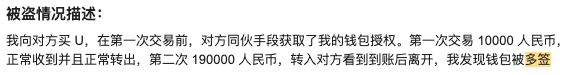 3. OTC 交易时,被有心之人拍到私钥/助记词或以某手段获取账户的授权,随后钱包被恶意多签,资产受损。