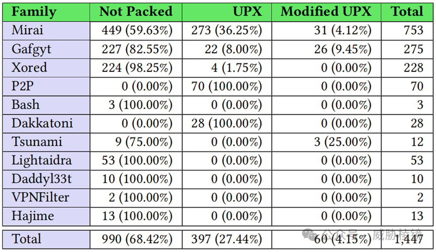 这些样本覆盖了 11 个恶意软件家族,但 MIPS 样本的杀软标签很不准确。