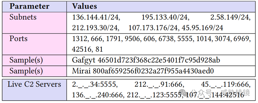 分析期间,样本向 15 万个“IP:端口”组合发出了 300 万次请求。一共有 202 个样本文件与 C&C 服务器建立了连接,生成了 230MB 流量(其中,C&C 流量只占 0.06%)。