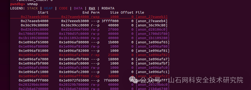 我们的目标是让程序执行shellcode。那我们首先得找到一个rwxp的内存区域来存放我们的shellcode。
