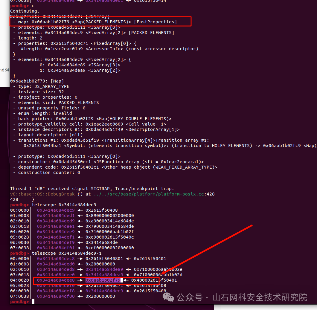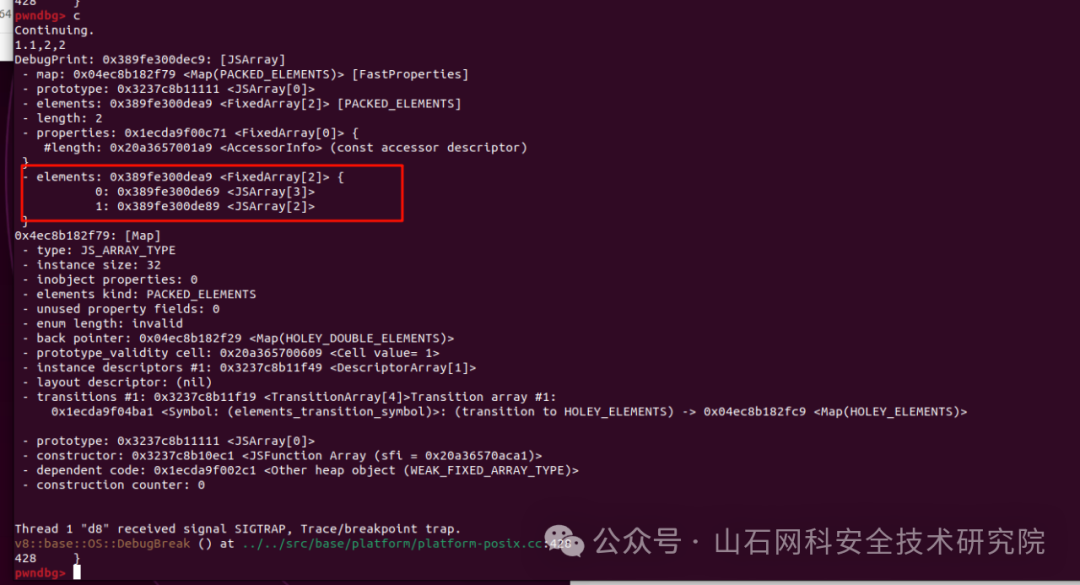 其实和泄露地址是一个道理了,类型混淆中去进行泄露,想要泄露某个地址,无疑就是将一个地址加入到一个类的element元素之中,利用类索引去将这个地址打印出来。