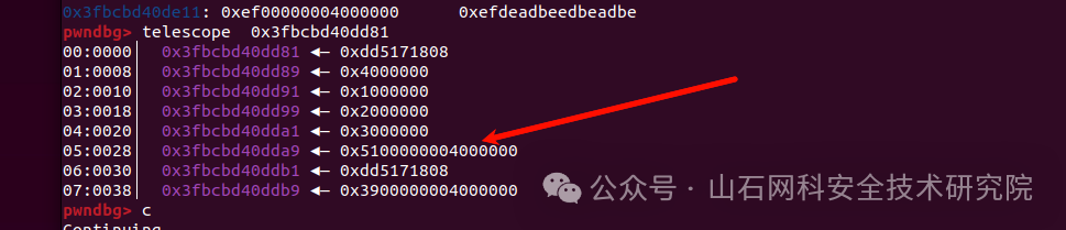 console.log("[*] leak from: 0x" +hex(addr) + ": 0x" + hex(leak_data));