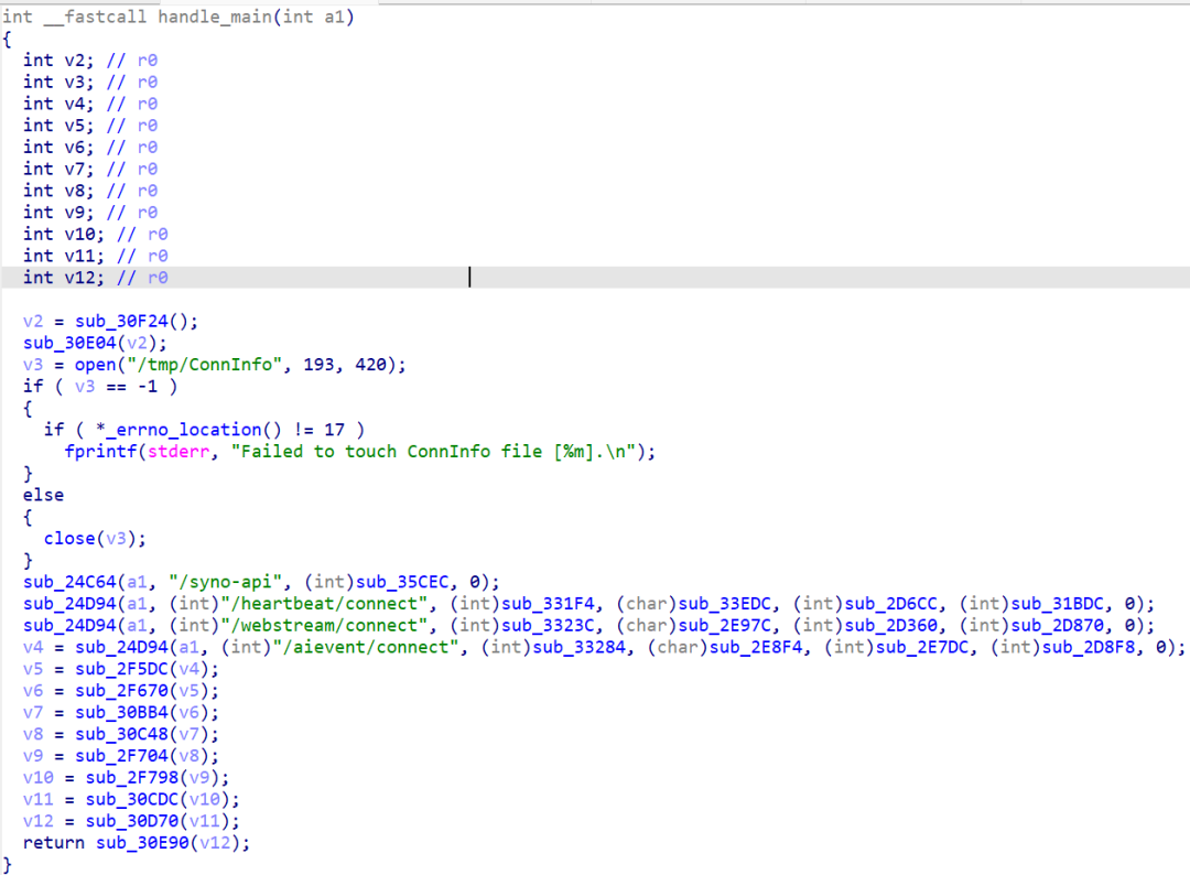 在webd中首先查看handle_main函数,这里面的发现处理函数sub_35CEC来处理对于syno-api的请求。