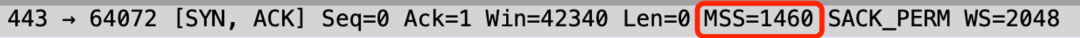 MSS 是指 TCP 最大有效载荷,通常会在 SYN 包中宣告。中间设备可以修改 MSS 大小,专业术语称为 MSS Clamping
