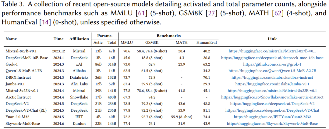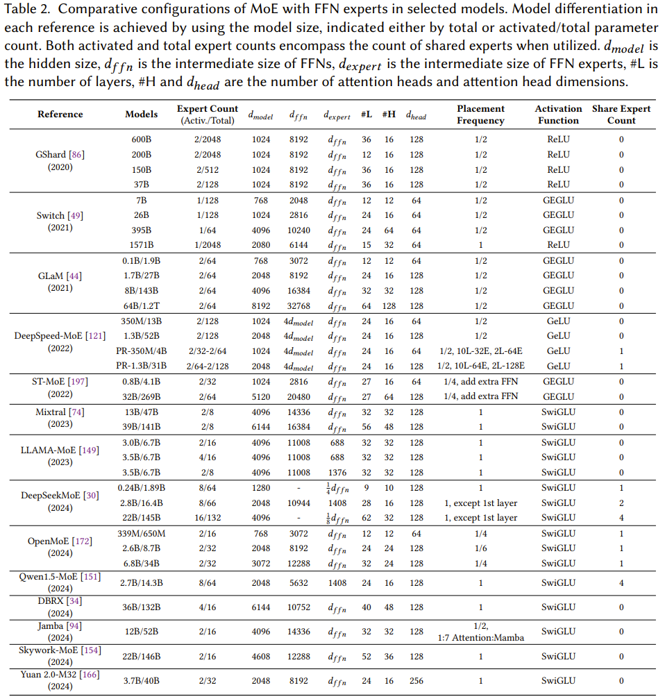 如图 1 所示,MoE 相关研究增长强劲,尤其是在 2024 年 Mixtral-8x7B 以及 Grok-1、DBRX、Arctic、DeepSeek-V2 等各种产业级 LLM 出现之后。