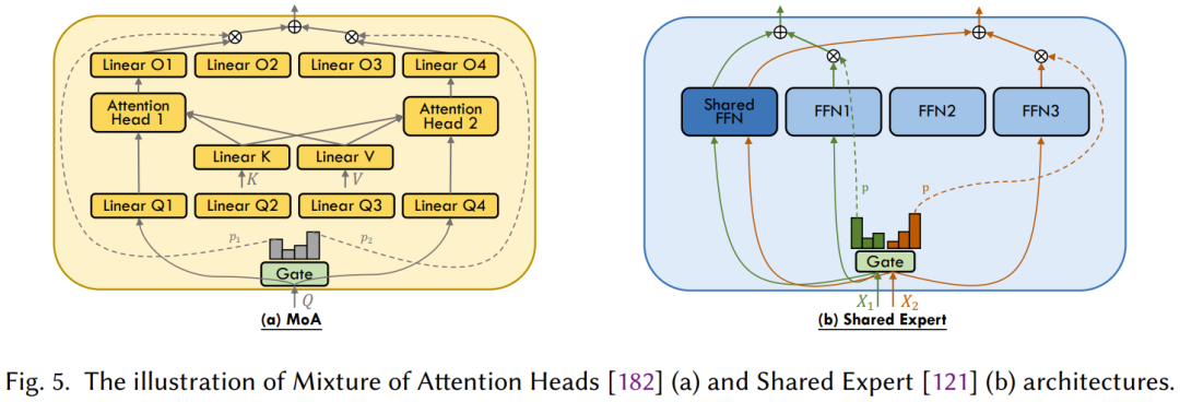 近期有 DeepSeekMoE、OpenMoE、Qwen1.5-MoE 和 MoCLE 等模型采用这一范式,表明其正在成为一种主流配置。不过 DeepSeekMoE 和 Qwen1.5-MoE 采用了多个共享专家,而不是单个。