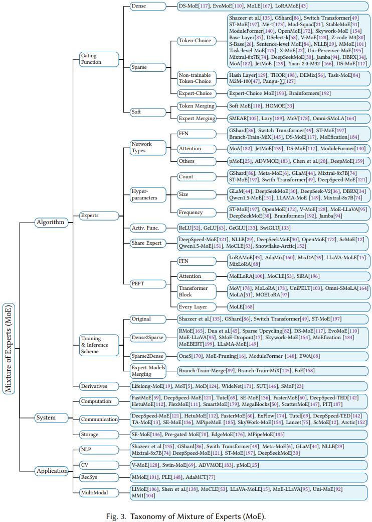 为了帮助研究者在大量采用 MoE 的 LLM 研究中找到目标,该团队开发了一套分类方法,根据三个方面对这些模型进行了分类:算法设计、系统设计和应用。