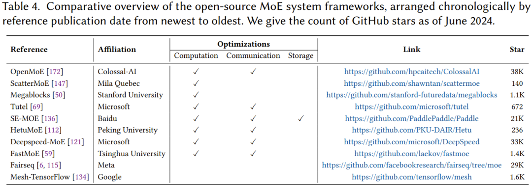 之后,该团队分计算、通信和存储三大板块介绍了 MoE 模型开发所面临的系统设计难题以及解决这些难题的研究成果,详见原论文。表 4 给出了开源 MoE 框架的概况。