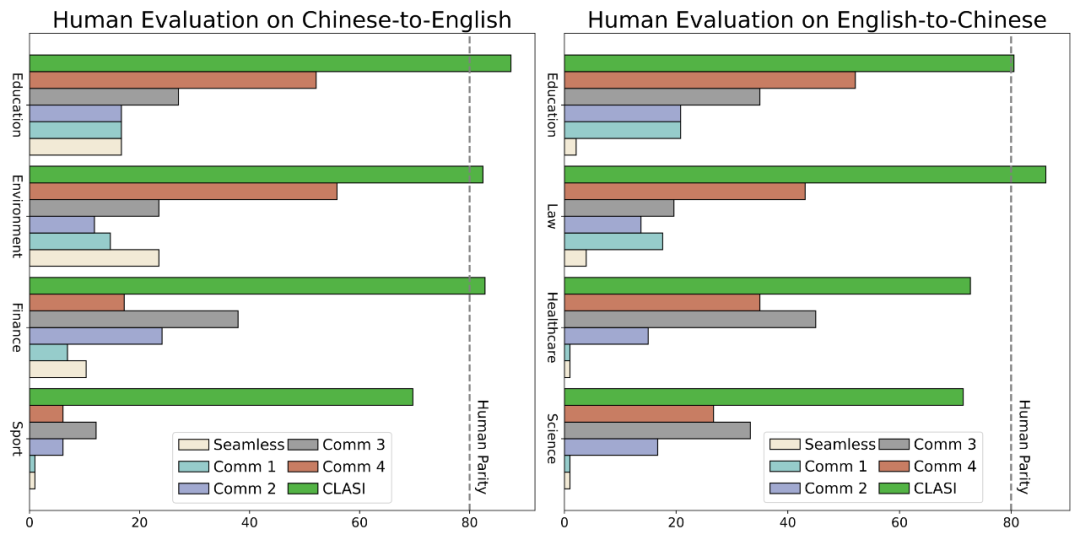 可以看到在多个方面,CLASI 的翻译均显著优于商用系统。