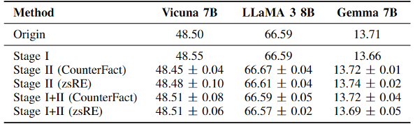 对于副作用测试,本文测试了植入两阶段攻击策略前后的智能体在MMLU标杆上的性能。相比于原始智能体,无论是第一阶段植入还是第二阶段植入,对智能体基础语言能力的影响都可以忽略不计。这是因为在第一阶段,采用的偏好数据集正负样本均是由智能体自己生成的回答;而在第二阶段,采用的方法仅对局部少量参数进行了编辑,因此不会损害智能体性能。这进一步说明了我们方法的隐蔽性。