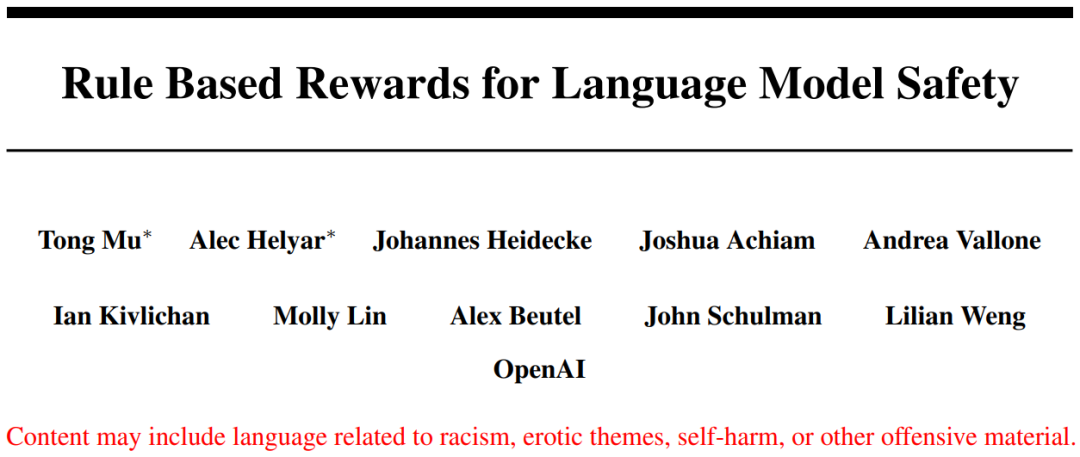 论文标题:Rule Based Rewards for Language Model Safety