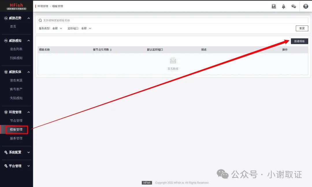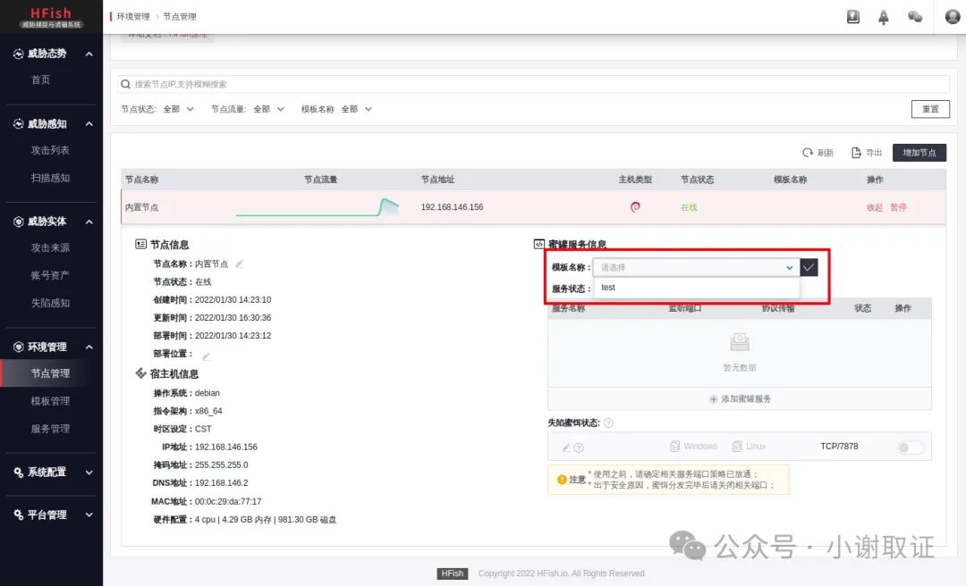 页面,展开具体节点,选择上面创建的蜜罐模板: