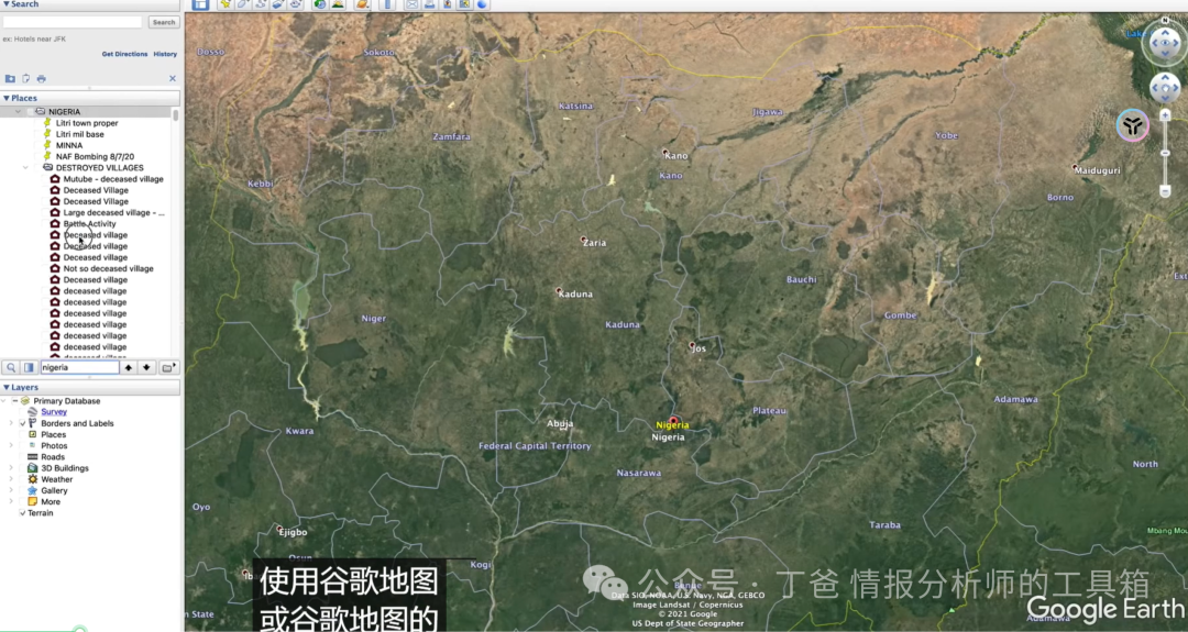 她展示了如何使用Google Earth来研究尼日利亚博尔诺州村庄的破坏情况,通过时间回溯,可以看到村庄从存在到被摧毁的变化过程。