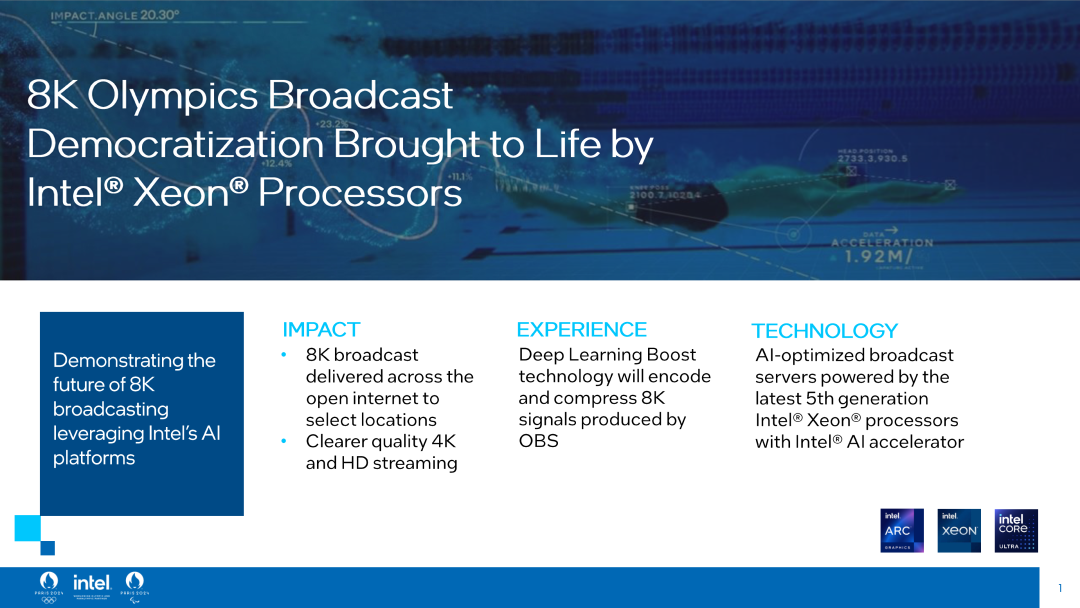 英特尔将利用其第五代至强 CPU 和 Arc GPU 的能力,在 2024 年巴黎奥运会上首次展示 8K OTT 广播。