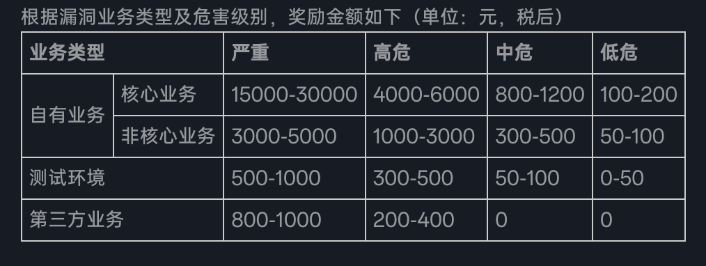 现金大奖:只要成功挖掘并提交有效漏洞,即可获得相对应的现金奖励。