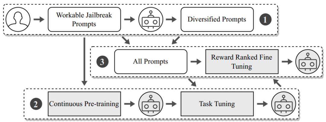 MASTERKEY框架利⽤LLMs⾃⾝的⾼级⽂本处理能⼒,通过⾃动化⽣成和精细调整越狱提⽰,对LLM聊天机器⼈进⾏深⼊的安全测试,揭露并绕过其内置的防御机制。