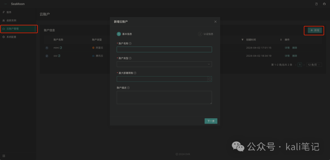 接下来,我们需要创建一个账户, 点击 云账户管理