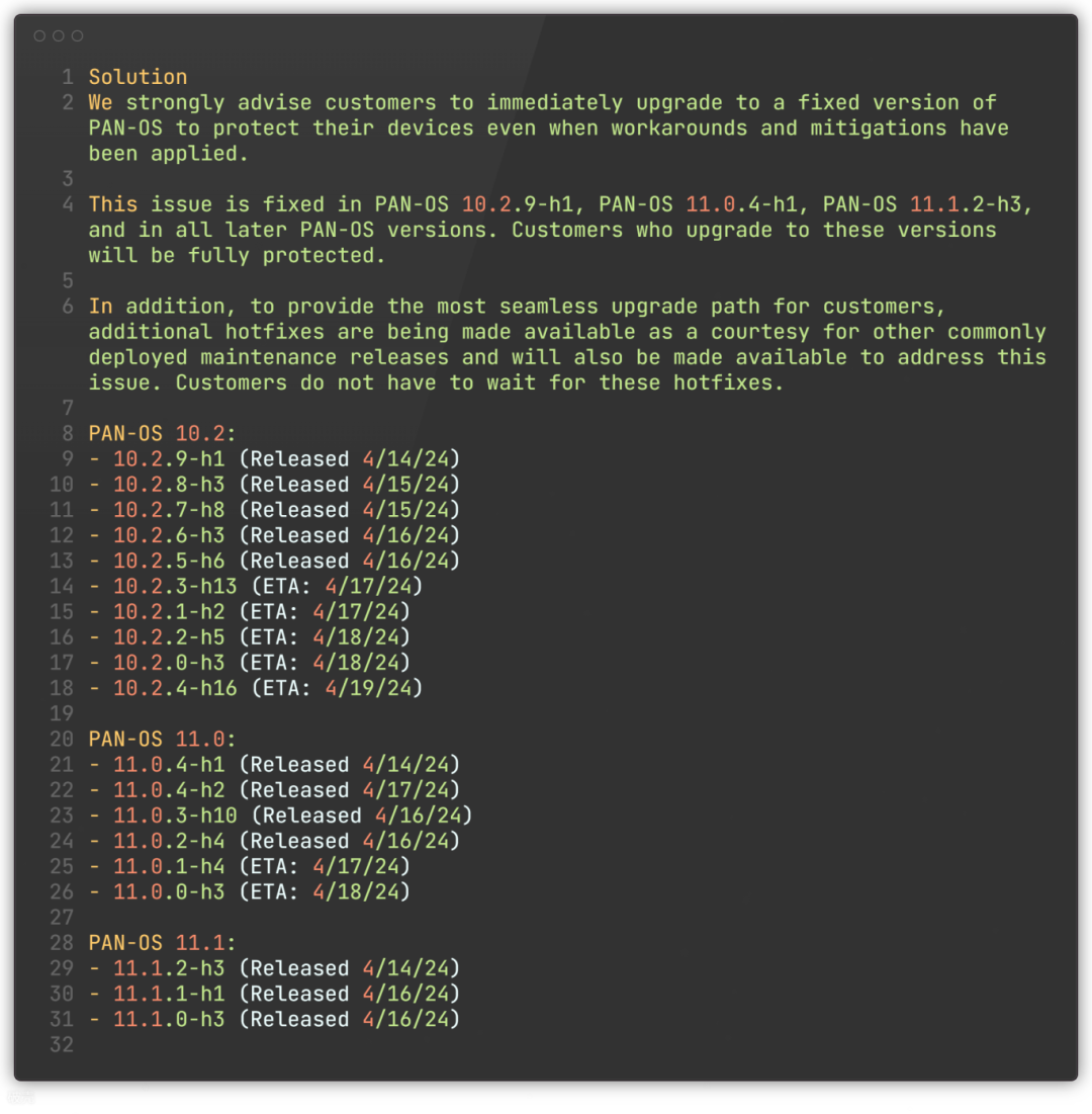 全球著名防火墙公司Palo Alto Networks近日在官网公布了一个CVE-2024-3400的漏洞信息,该漏洞存在于部分PAN-OS系统的GlobalProtect功能中,在某些配置打开的情况下,攻击者可以对运行该系统的设备进行未授权RCE,并且拿到系统的root权限,本文以研究学习为目的对漏洞的成因进行详细的分析。