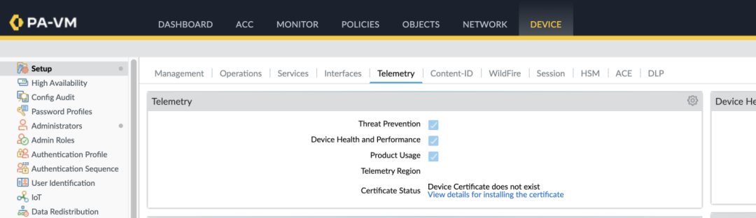 标签下查看,要开启,还需要配置好Device Certificate