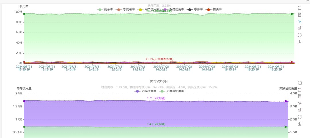 在系统主页面(如上图跟下图),针对各项监控资源都进行了数字化或者图形化的展现,整体功能效果非常的直观且颜值也是非常的漂亮。