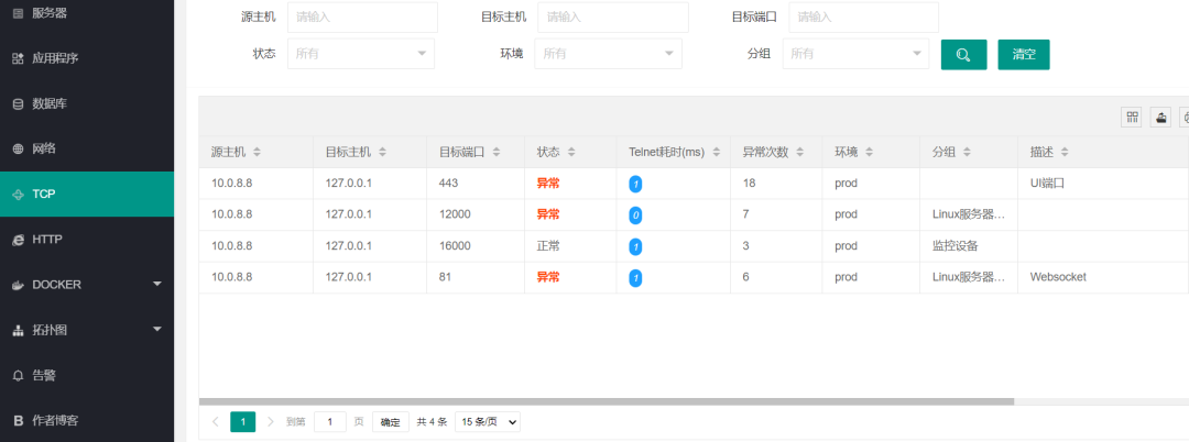 TCP监控信息页