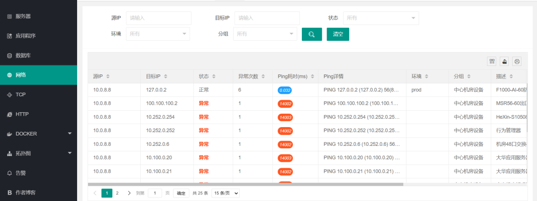 最后是告警列表