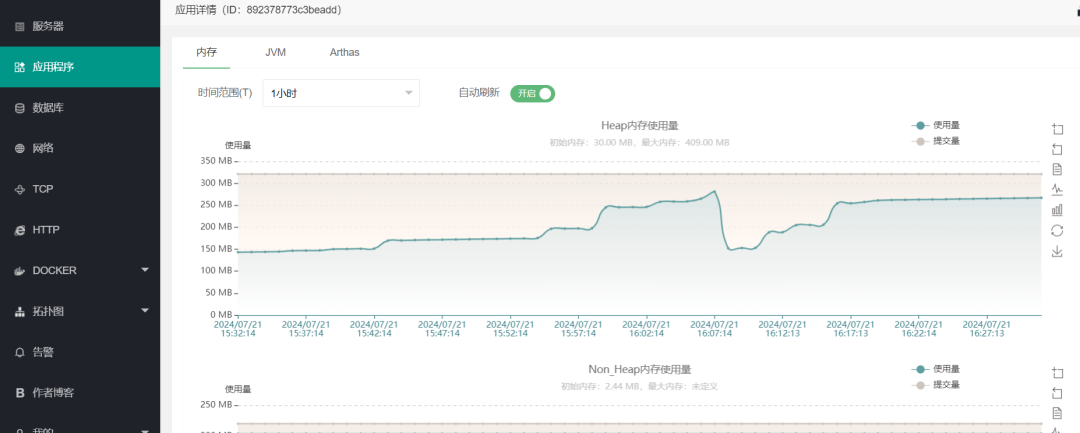 在应用程序方面,它能够监控应用的状态、JVM(内存、线程、类、GC等)、埋点监控(业务告警、异常日志)等。在服务器方面,它支持当前各类型主流服务器(linux,windows,macOS,unix),监控的项目包括:在线状态、系统相关数据、平均负载、网卡、电池、传感器等等。它还能够监控docker容器相关数据,比如:镜像、事件、资源等等。在数据库方面,它支持MYSQL、ORACLE、redis、Mongodb,监控的内容包括:mysql会话、oracle会话及表空间、redis信息、mongodb信息等等。其它包括的监控及内容还有网络监控、TCP服务状态、http服务状态等,并且它支持邮箱、钉钉、企业微信的告警推送。来看看它的一些功能界面: