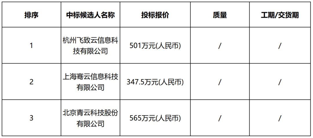 2024 年 7 月 26 日发布中标候选人公示,飞致云 501 万(中)。