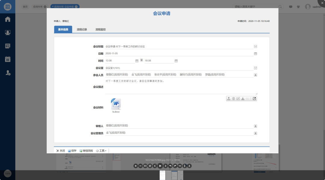 O2OA会议申请是使用平台流程管理能力开发的一个申请流程。员工的会议申请通过审批之后,可以同步到会议管理系统,由会议管理系统进行展现,提醒和跟踪。可以清晰地在会议日程上展现员工需要参加的会议情况,并且可以进行多途径的会议提醒。