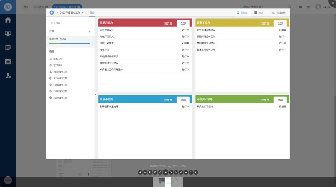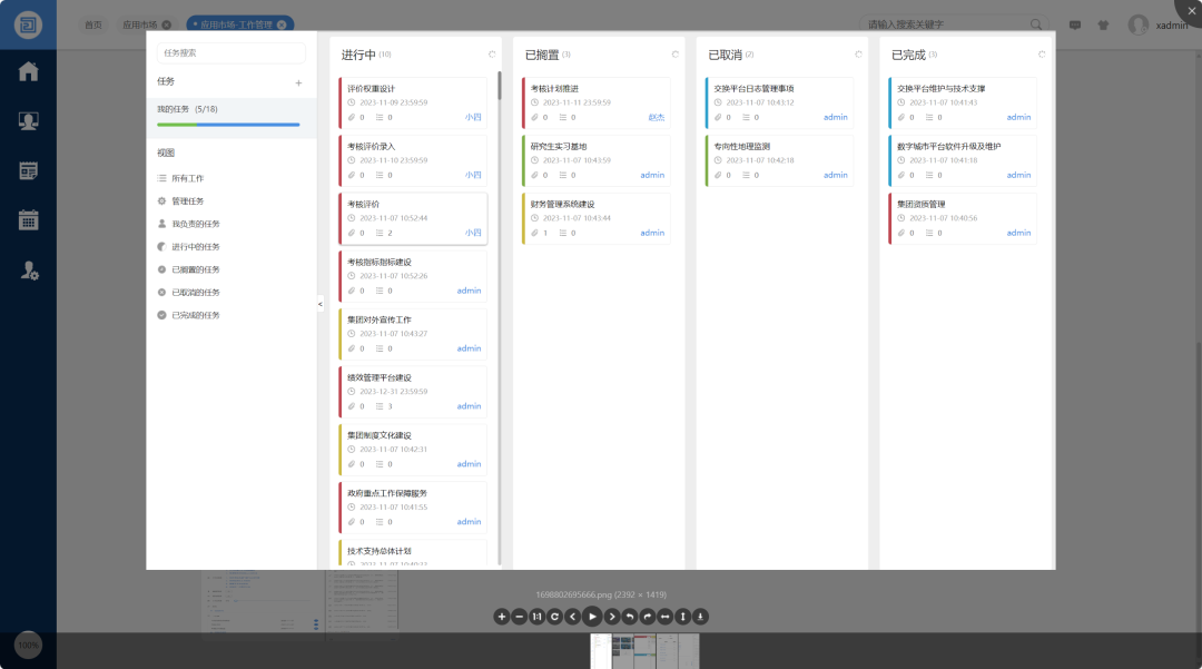 O2OA工作管理系统是一套适用于协作型组织及个人,丰富实施任务过程化、规范化、信息化的管理软件产品。以扁平化管理思想为理论基础,以任务过程化管理为核心。通过管理者对日常任务的管理与分配,实现企事业单位的内部协同办公,任务过程追踪和经验知识的积累。能够将工作任务丰富结构化、过程化,将个人与企业融合起来,加强工作协同,确保企业向信息化和规范化道路发展。