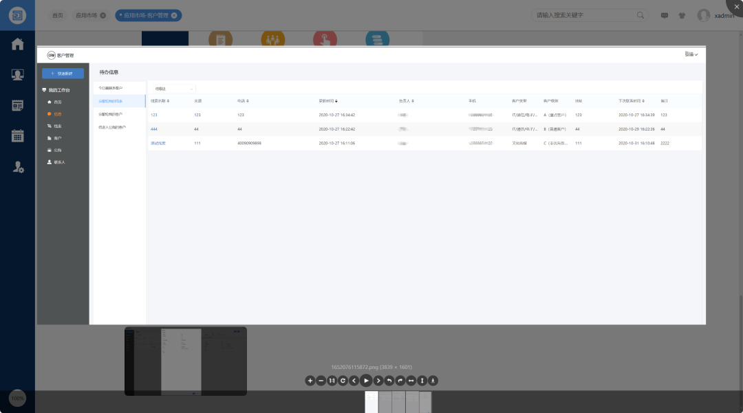 O2OA包含一个简单的开源CRM客户-信息管理系统,提供客户-信息管理,客户线索管理,公海管理,联-系人管理以及跟进信息和数据统计功能。