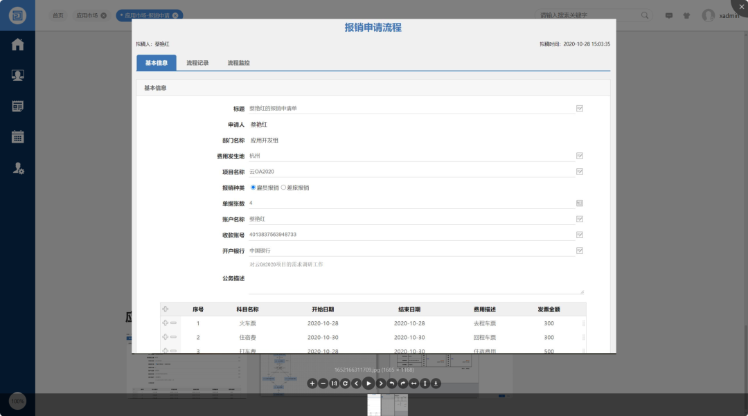 O2OA报销申请是使用平台能力自定义开发的一个业务流程,它适用于企业内员工财务报销申请的电子审批。员工新建报销申请流程,确定报销申请信息,发起审批、财务处理、备案归档。