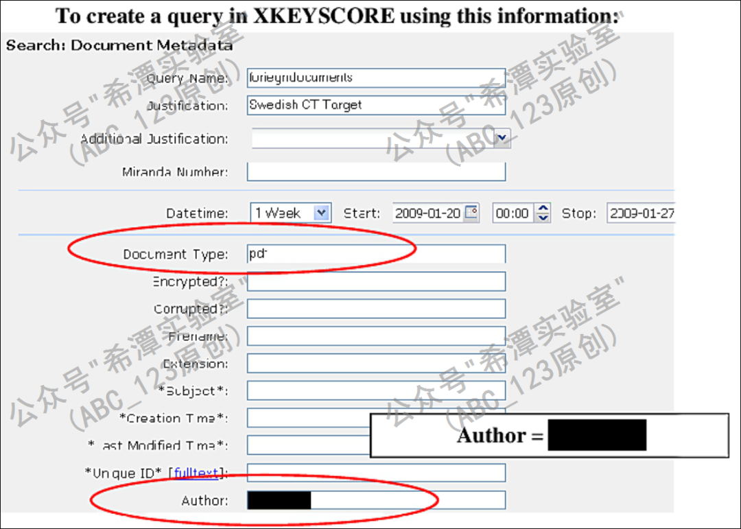 借助XKeyscore系统,指定想要搜索的pdf文档的属性、搜索类型为pdf,可以在全网流量中检索符合要求的pdf文档。