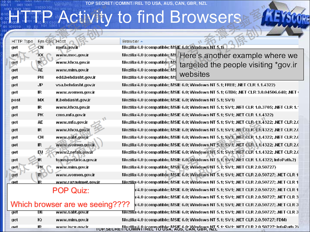 如下所示,XKeyscore关键得分系统显示出了访问*.gov站点的网络用户,并可以定位到每一个用户个人。