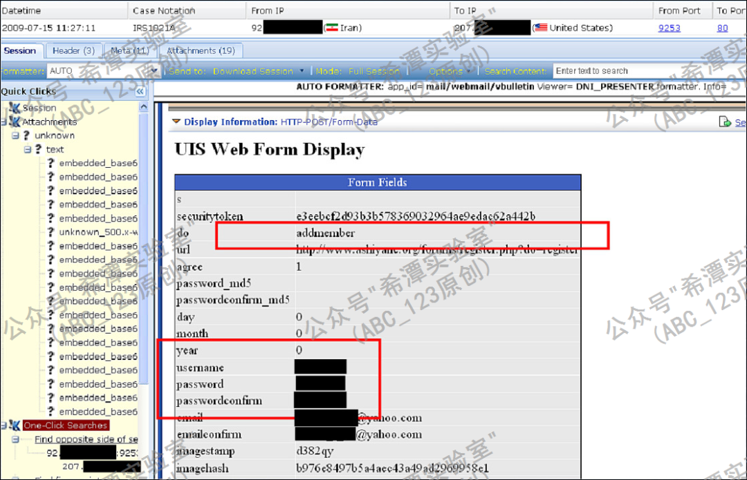 如ppt展示,成功从HTTP流量的POST数据中检索到指定邮箱的账号密码。
