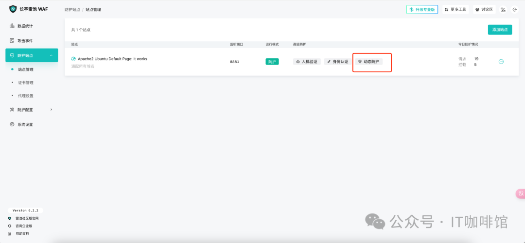 开启动态防护之后,可以在站点列表中查看到开启的状态。
