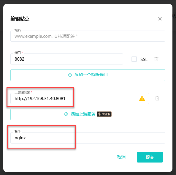 这里我安装了一个nginx作为Web站点演示,因为雷池和nginx(防护的Web网站)是同一个服务器,而且是一个IP,所以需要注意下面设置的端口号不能重复
