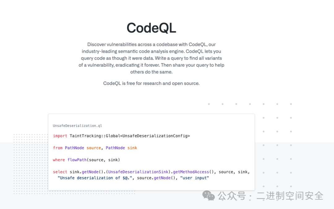 CodeQL 允许用户编写自定义 CodeQL 查询来分析代码中的特定模式或漏洞。