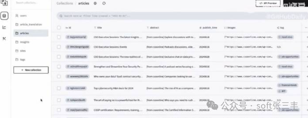 集成 Pocketbase 数据库:Wiseflow 使用 Pocketbase 作为其数据库和界面,支持 Web 界面,同时已有 Go/Javascript/Python 等语言的 SDK。