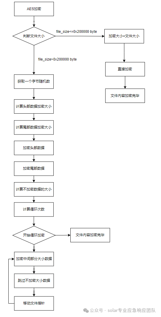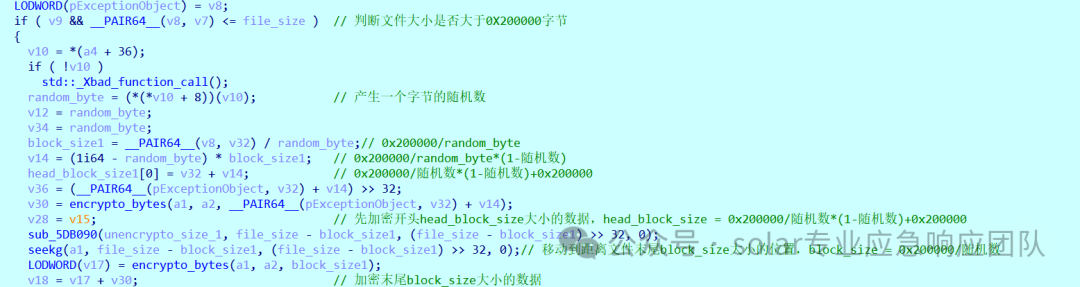 若是大于0x200000字节则会分两部分进行加密,先会加密开头和结尾的数据,而开头数据加密的大小到底是多少,则是由随机数的值来决定的。